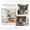 While my color palettes are designed with interior spaces in mind, their versatility allows for confident extension to exterior applications as well. Though the emphasis lies on interior design, the adaptable nature of the colors ensures they seamlessly transition from walls to cabinets to exterior surfaces, radiating timeless elegance throughout both indoor and outdoor areas.