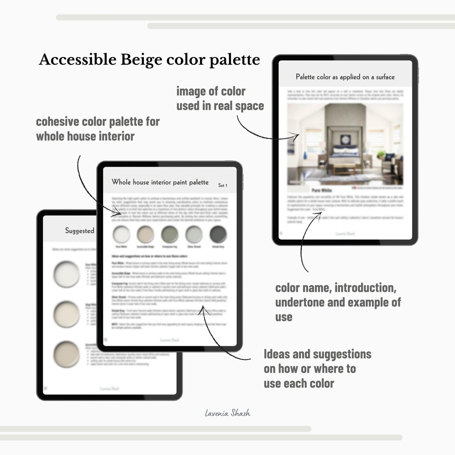 Introducing the sophisticated Accessible Beige color palette, meticulously curated around the beloved Sherwin Williams Accessible Beige - a muted yet stunning whole-house color revered for its timeless elegance. This thoughtfully crafted palette features nine carefully selected hues, promising a harmonious and coordinated ambiance for your home.