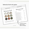 Introducing Bohemian Earth, a captivating color palette featuring nine enchanting hues, including whites, serene neutrals, earthy tones, stunning greens, and a rich dark brown. Carefully curated for individuals drawn to a boho aesthetic with color combinations inspired by Mother Earth.