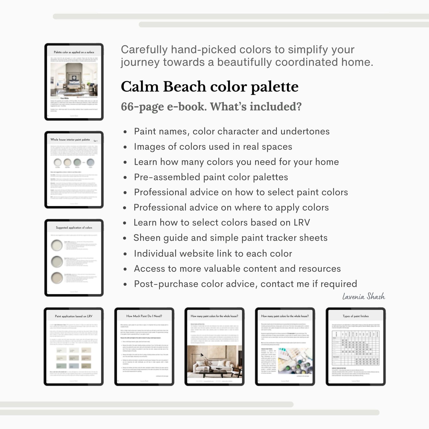 Introducing Calm Beach, a meticulously curated palette with nine inviting hues, including a white, neutrals and versatile blues and greens. Professionally designed for those seeking a beach-style living experience with cozy and relaxing colors, these serene tones effortlessly complement coastal and modern farmhouses, cottages or resort-style living.