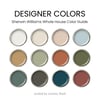 Introducing the Designer Colors palette, thoughtfully crafted from Sherwin Williams' top-selling and beloved shades. Highlighting whites, earth tones, a delicate blush pink, a subdued red, captivating blues and greens, along with a striking dark brown, this palette caters to an array of design inclinations. Whether your tastes lean towards Mid-century, Bohemian, Eclectic, Art deco, Shabby chic, Rustic farmhouse, Mediterranean, Scandinavian, or Japandi styles, these colors are meticulously chosen to effortlessly blend into your living spaces.