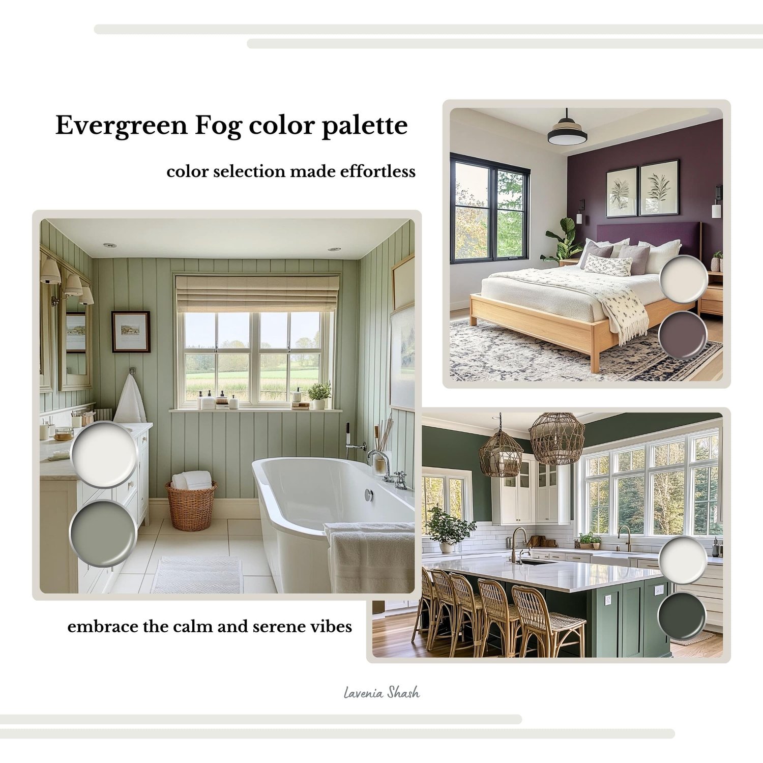 Crafted with enthusiasts of Evergreen Fog in mind, this palette beckons effortless integration into your home decor, accompanied by expert color pairing suggestions to guide you on your design journey.