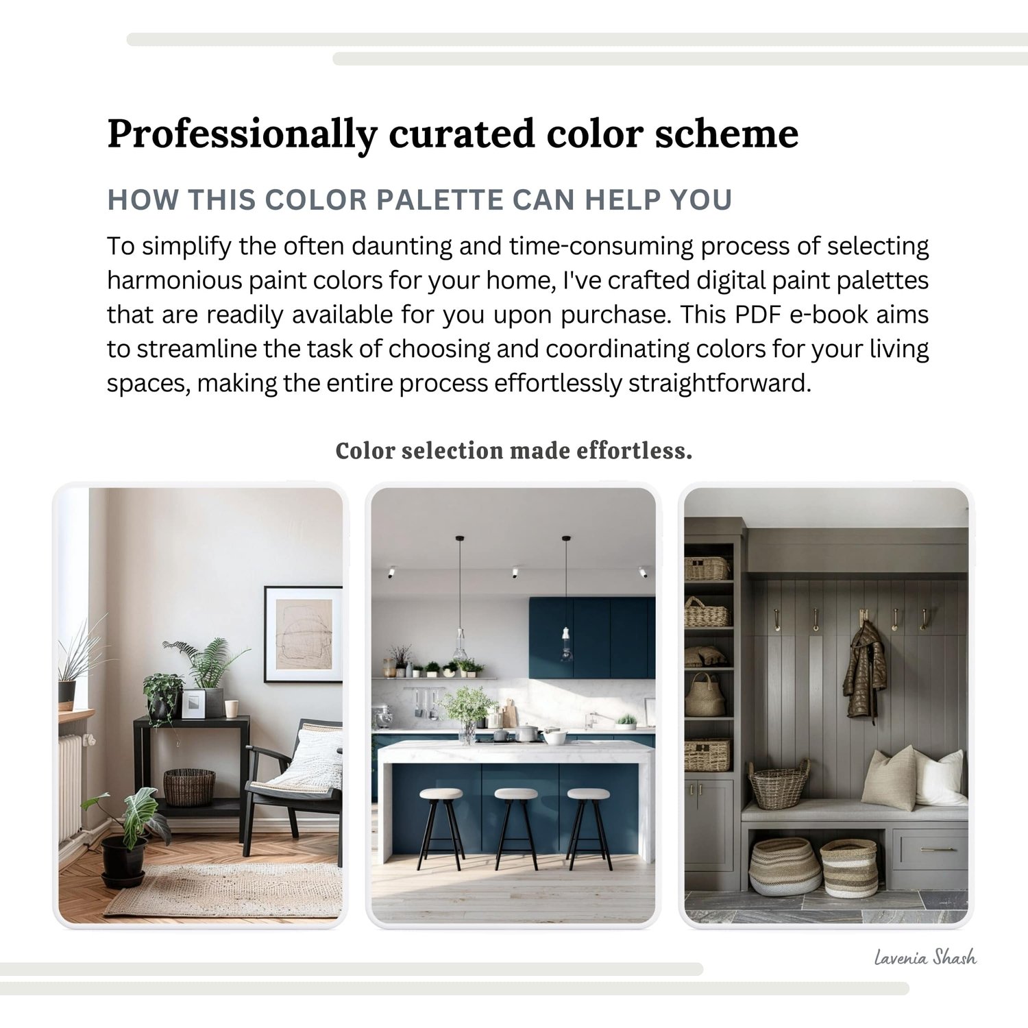 Choosing the right paint colors that will work together can be overwhelming and time-consuming. In an attempt to make finding colors that will work together less complicated and confusing for you, I have created these paint palettes that you can have immediate access to upon purchase. The objective of this guide is to make selecting and pairing colors for your home and space a breeze.