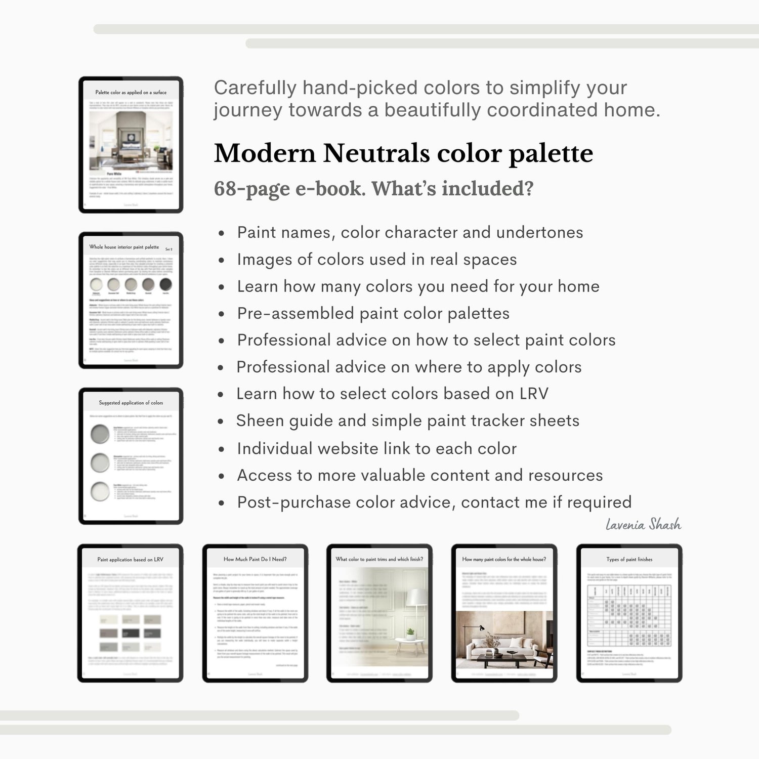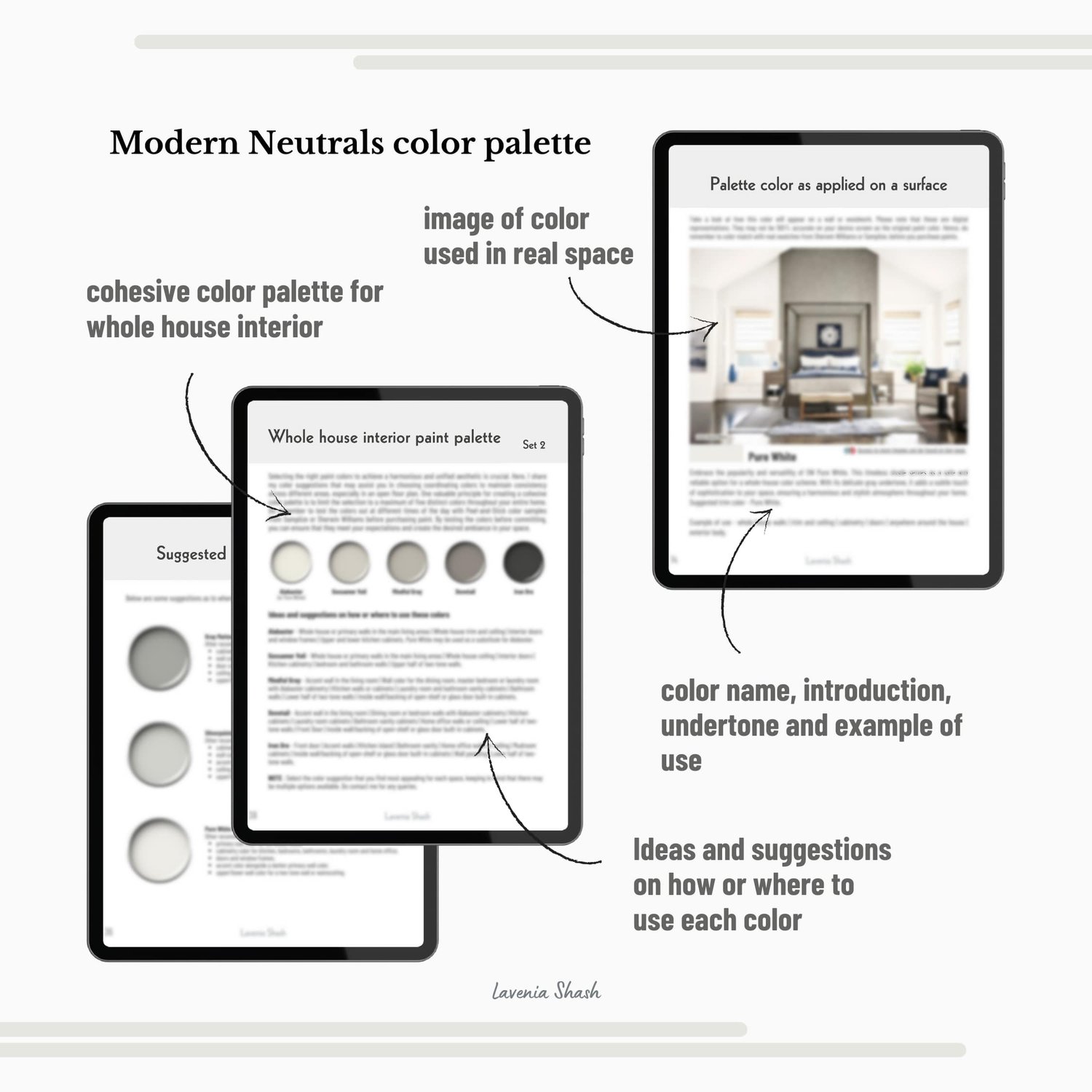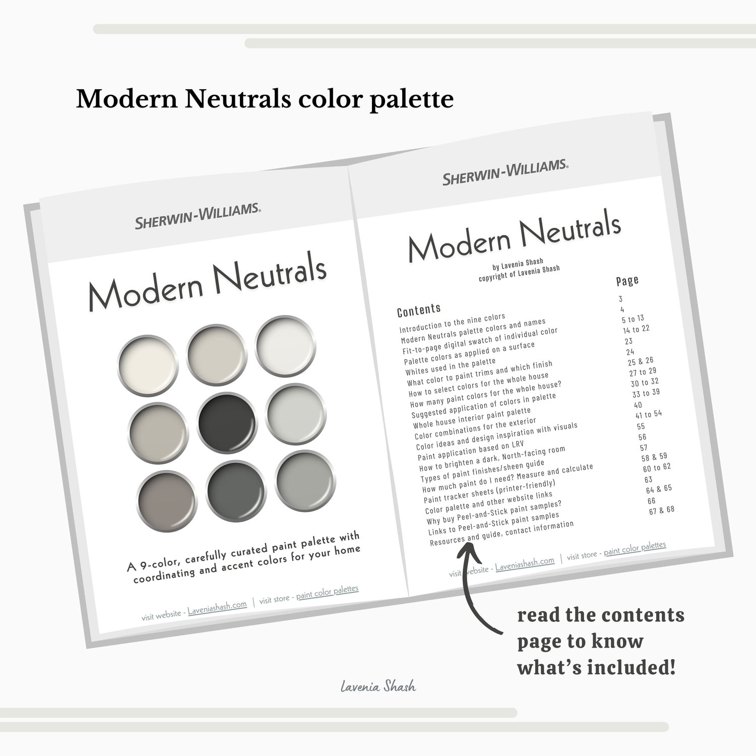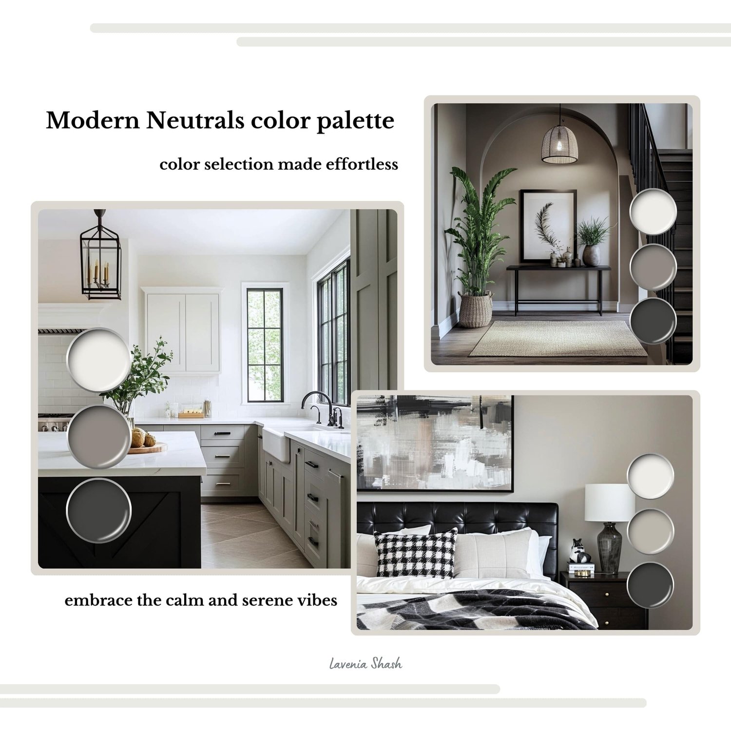 Introducing the exclusive palette: Modern Neutrals, a meticulously curated collection of nine versatile colors that includes whites, cool grays, warm grays, and sophisticated dark accent shades. This expertly crafted palette is tailored for individuals who embrace the timeless allure of neutrals and desire to infuse these hues into their homes and living spaces.