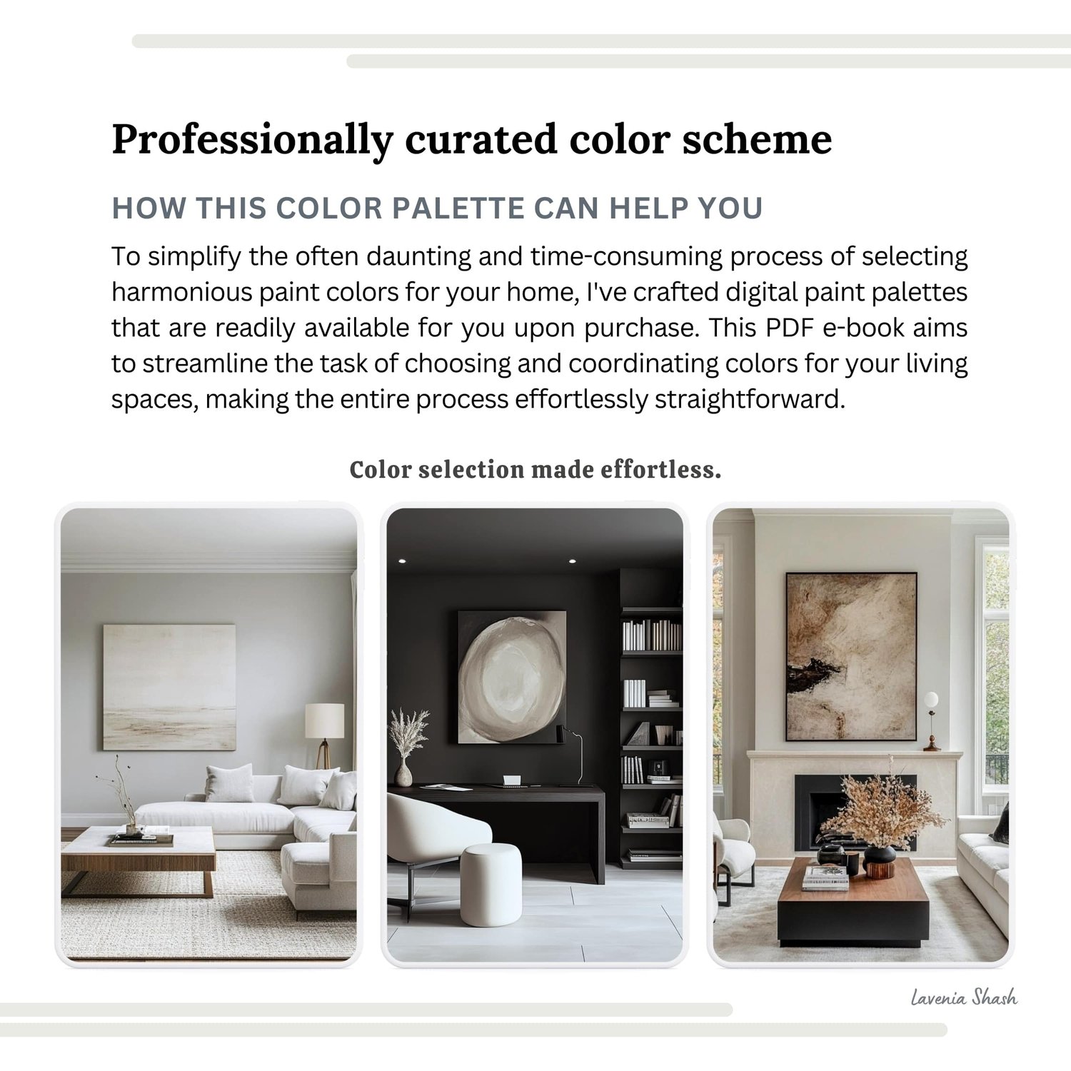 Choosing the right paint colors that will work together can be overwhelming and time-consuming. In an attempt to make finding colors that will work together less complicated and confusing for you, I have created these paint palettes that you can have immediate access to upon purchase. The objective of this guide is to make selecting and pairing colors for your home and space a breeze.