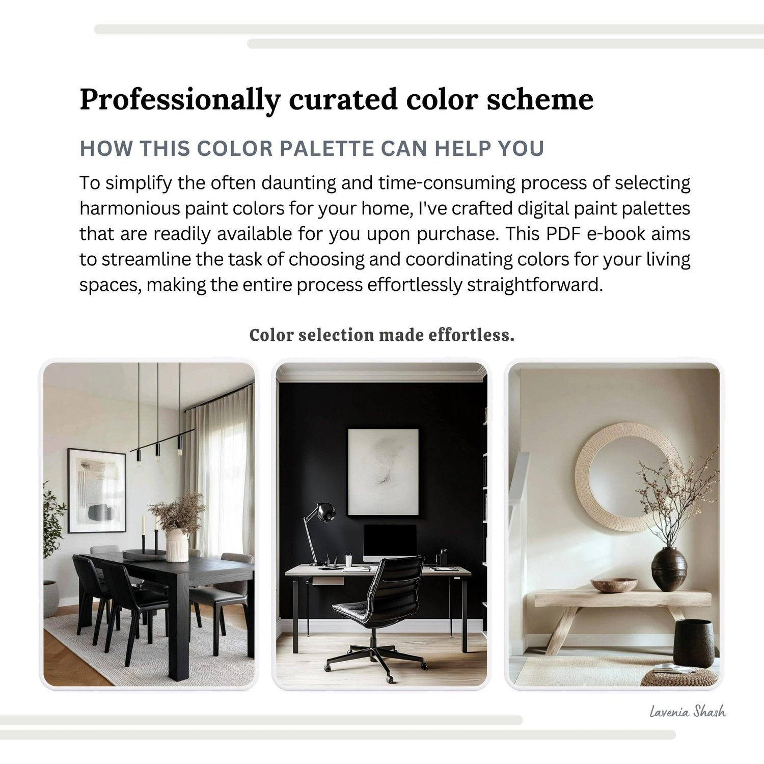 Choosing the right paint colors that will work together can be overwhelming and time-consuming. In an attempt to make finding colors that will work together less complicated and confusing for you, I have created these paint palettes that you can have immediate access to upon purchase. The objective of this guide is to make selecting and pairing colors for your home and space a breeze.