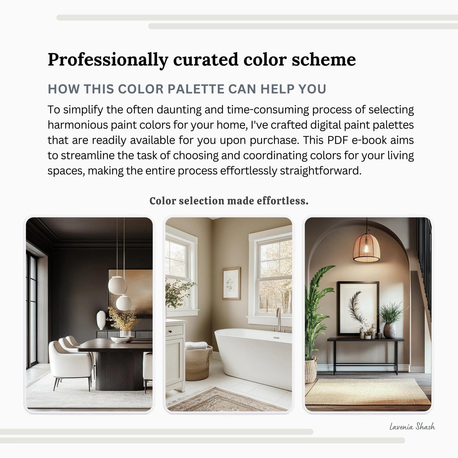 Choosing the right paint colors that will work together can be overwhelming and time-consuming. In an attempt to make finding colors that will work together less complicated and confusing for you, I have created these paint palettes that you can have immediate access to upon purchase. The objective of this guide is to make selecting and pairing colors for your home and space a breeze.
