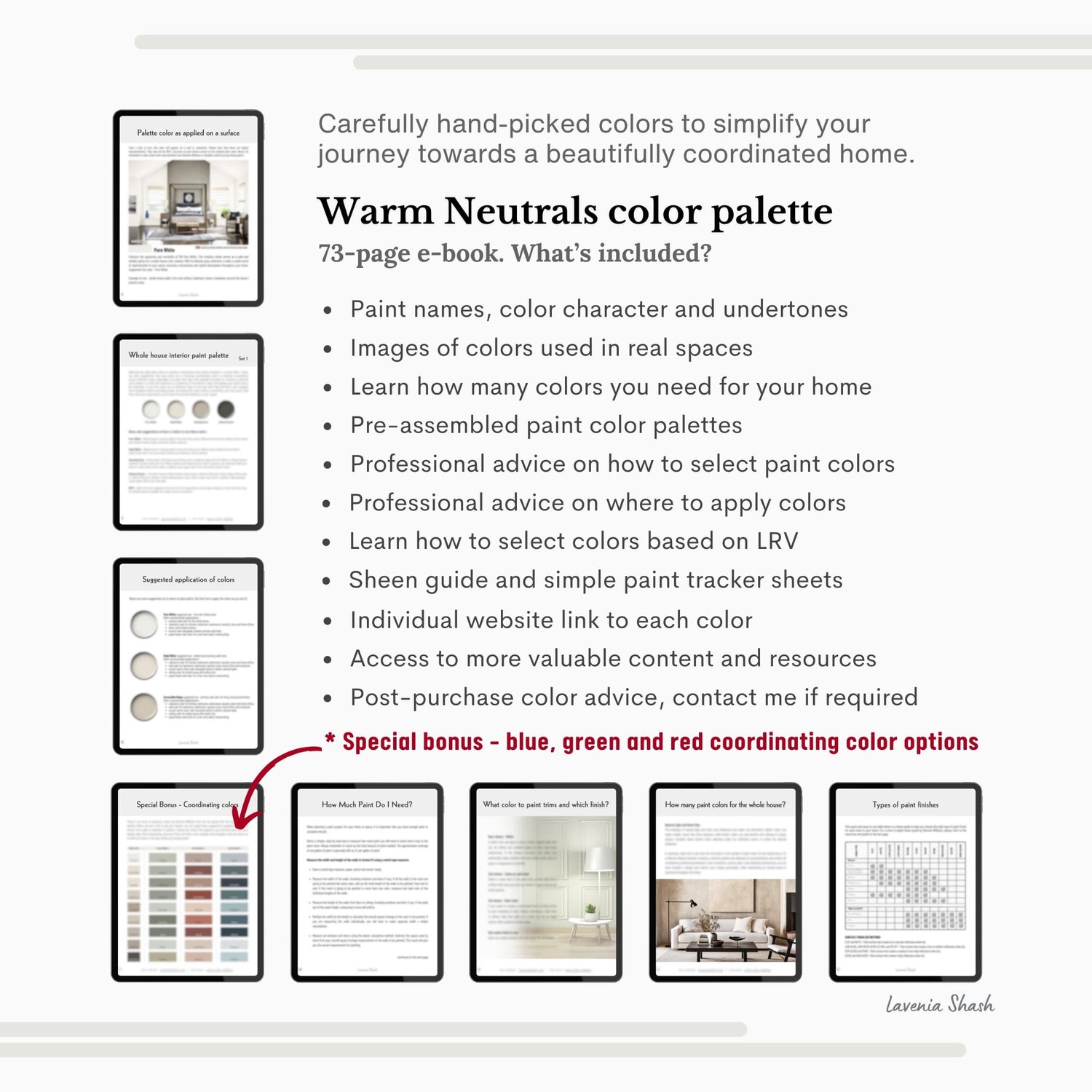 To assist you in bringing your vision to life, I've included expert color pairing suggestions. From blues and greens to whites and reds, I've curated a list of colors that beautifully complement the neutrals in this palette.